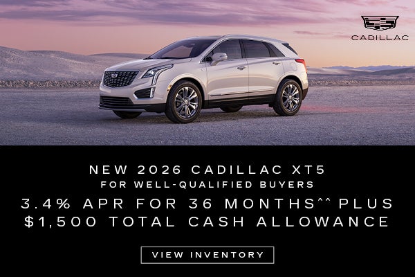 ^^3.4% APR for 36 months for well-qualified buyers when financed w/Cadillac Financial. Monthly payment is $29.26 for every $1000 you finance. Average down payment is 27.2% Some customers will not qualify. Take new retail delivery by 03-02-2026.