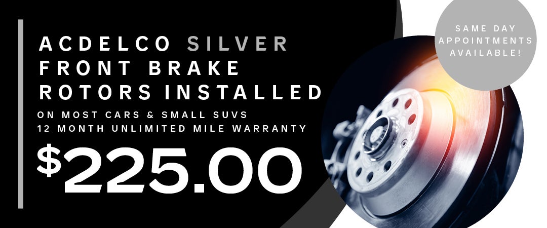 Tax extra. Excludes coated rotors, enhanced-performance rotors, medium-duty trucks, and other select vehicles. Offer may not be combined with any other coupons, discounts, or promotions. Please present this coupon at time of purchase. Limit one coupon per person. Coupon does not apply to prior purchases. Other restrictions may apply. Void where prohibited. See dealer for complete details.