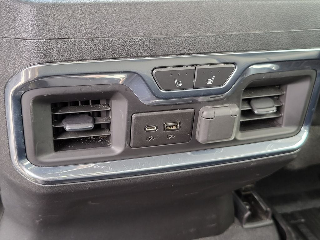 Technology Package: HD Surround Vision with 2 Trailer View Camera Provisions; Multicolor 15" Diagonal Head-Up Display; Bed View Camera; Auto-Dimming Inside Rearview Mirror with Camera. Denali Ultimate Package: Power Sunroof. Preferred Equipment Group 5SA: HD Rear Vision Camera; LED Cargo Area Lighting; Remote Vehicle Starter System; 2 USB Ports (first Row); Power Sliding Rear Window with Defogger; Safety Alert Seat; Electric Rear-Window Defogger; Floor-Mounted Center Console; Unauthorized Entry Theft-Deterrent System; Signature Denali Grille with High Gloss Black Mesh; Compass Located in Instrument Cluster; Electrical Lock Control Steering Column; Driver Alert Package II; 120-Volt Instrument Panel Power Outlet; Heated Driver and Front Outboard Passenger Seats; Wireless Charging; X31 Off-Road Package; Steering Wheel Audio Controls; GMC Connected Access Capable; Universal Home Remote; Driver Alert Package I; OnStar and GMC Connected Services Capable; 120-Volt Bed Mounted Power Outlet; 2nd Row Heated Outboard Seats; Power Front Passenger Windows with Express Up/down; 2-Speed Active Transfer Case; Deep-Tinted Glass; Spray-On Pickup Bed Liner with Denali Logo; Power Rear Windows with Express Down; Integrated Trailer Brake Controller; AM/FM Stereo with Premium GMC Infotainment System and Navigation; Power Front Windows with Driver Express Up/down; Ventilated Driver and Front Passenger Seats; Manual Tilt-Wheel/telescoping Steering Column; 2nd Row Dual USB Charge-Only Ports; Keyless Open and Start; 4G LTE Wi-Fi Hotspot Capable; ProGrade Trailering System; Rear Wheelhouse Liners; 6" Rectangular Chromed Tubular Assist Steps; 12-Volt Rear Auxiliary Power Outlet; 2 USB Ports Inside Console; Polished Exhaust Tip; Power Door Lock