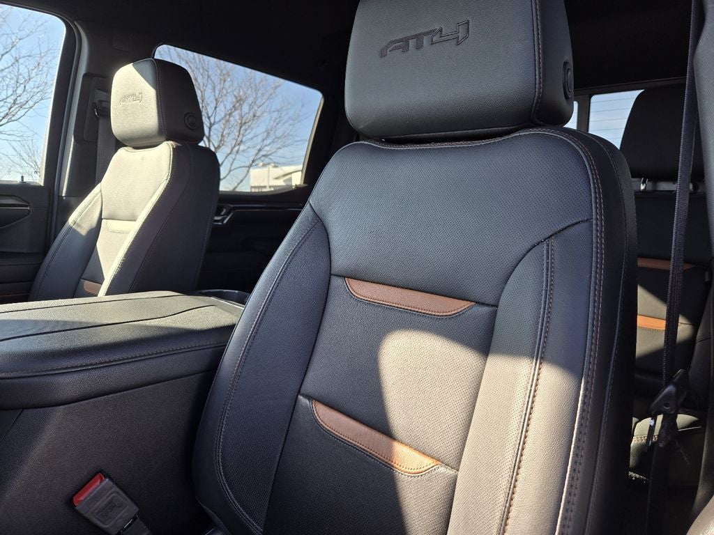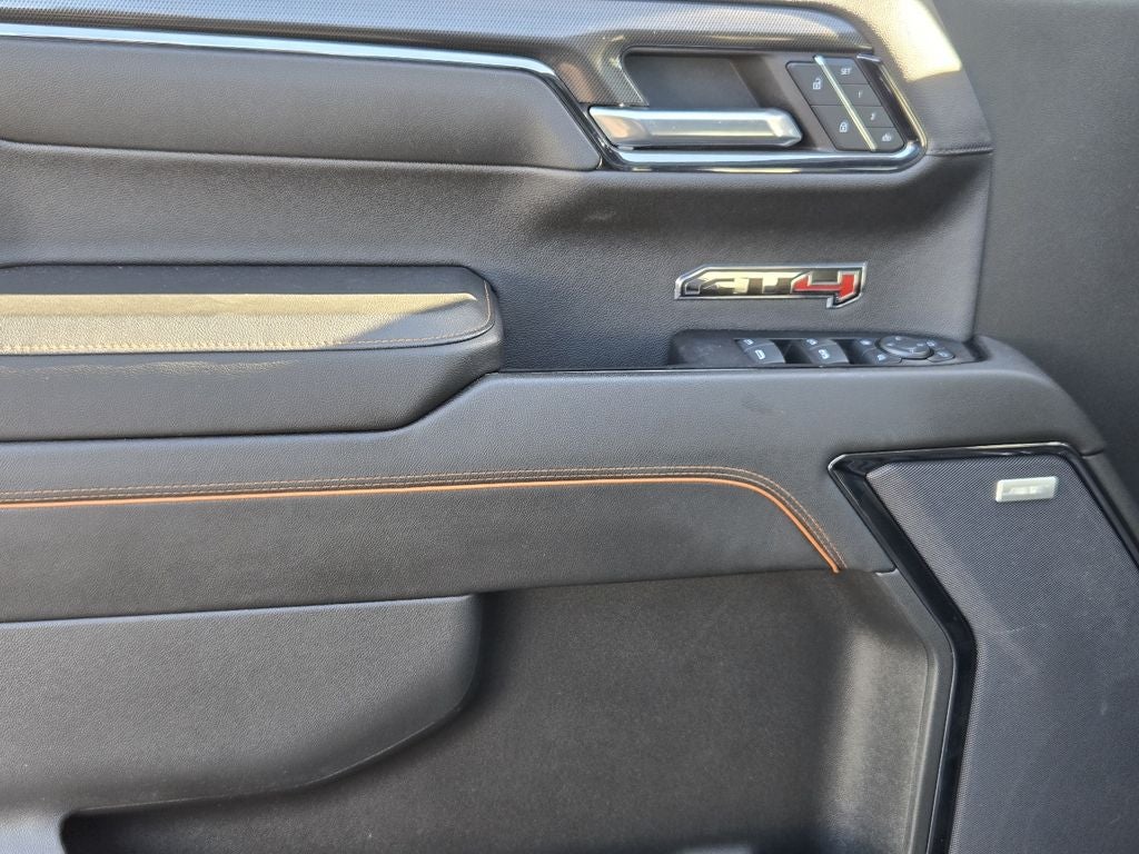 - Preferred Equipment Group 4SB: Trailer Side Blind Zone Alert; Perforated Leather Front Seat Trim; 3.23 Rear Axle Ratio; Ultrasonic Front and Rear Park Assist; Trailer Camera Provisions; Electric Rear-Window Defogger; Theft Deterrent System (unauthorized Entry); Black Chrome Header and Grille Insert Bars; Front Rain-Sensing Wipers; Heavy-Duty Air Filter; Skid Plates; 120-Volt Interior Power Outlet; Wireless Charging; Front Bucket Seats; Front Premium Floor Liners with Removable Carpet Insert; Colour-Keyed Carpeting Floor Covering; OnStar and GMC Connected Services Capable; Heated 2nd Row Outboard Seats; Power Front Passenger Windows with Express Up/down; Power Rear Windows with Express Down; Integrated Trailer Brake Controller; HD Surround Vision; Power Rake and Telescoping Steering Column; Keyless Open and Start; Perimeter Lighting; Push Button Start; LED Cargo Area Lighting; Remote Vehicle Starter System; In-Vehicle Trailering System App; Hill Descent Control; Floor-Mounted Centre Console; LT275/65R18C MT BW Tires; Rear Cross Traffic Braking; GMC Pro Safety; Trailering Package; 2 USB Ports; 2 Charge/data USB Ports Inside Centre Console; Off-Road Suspension with 2" Factory Installed Lift; Steering Wheel Audio Controls; 2 Charge-Only Rear USB Ports; GMC Connected Access Capable; Premium GMC Infotainment Audio System Radio; 2-Speed Transfer Case; Deep-Tinted Glass; Spray-On Pickup Bedliner with AT4 Logo; 18" X 8.5" Machined Aluminum Wheels; Red Recovery Hooks; Hitch View; Power Front Windows with Driver Express Up/down; Rear Pedestrian Alert; Wi-Fi Hotspot Capable; Rear Wheelhouse Liners; Auto-Locking Rear Differential; Power Door Locks